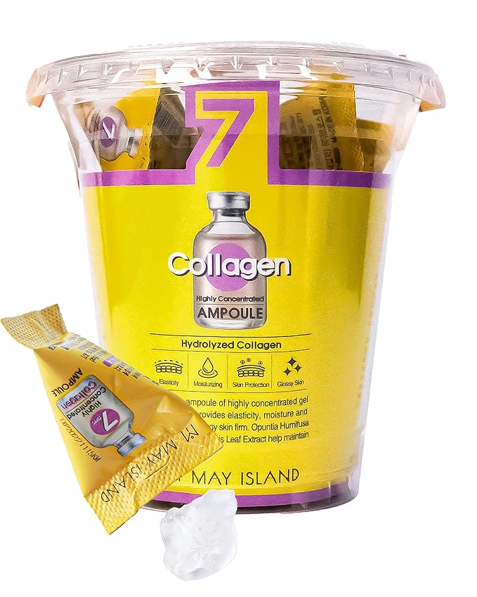 MAY ISLAND 7 Days Highly Concentrated Collagen Ampoule - Korean Intensive Firming Serum with Hydrolyzed Collagen - Single-Use Individual Gel Ampoules for Elasticity & Anti-Aging, 0.1oz. x 12 Pack