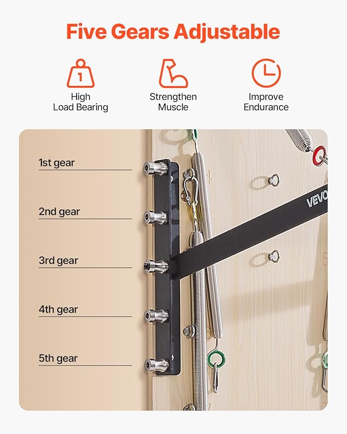 • Adjustable Resistance Levels: The wall mounted pilates reformer machine uses high-quality springs for a solid and stable structure. With 8 adjustable levels, it includes a mix of heavy, medium, and light springs, and features 5 adjustable foot hooks and 10 adjustable pegs on the board, enabling customized workouts