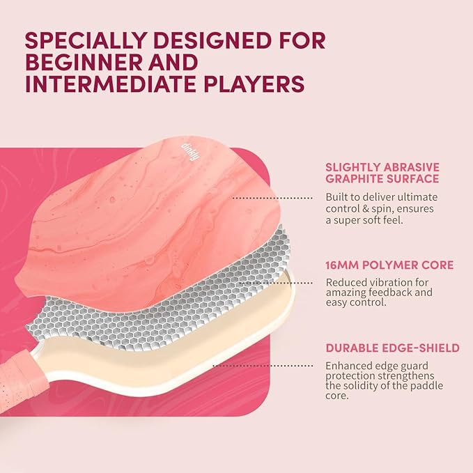 • [Beginner-Friendly] Design for beginners, our 8oz pickleball paddle features 13mm polymer honeycomb core for a larger hitting area and lightweight head, providing the perfect balance of speed and power. With a graphite fiber surface and durable edge shield, it offers excellent shock absorption and elasticity, ensuring a smooth, controlled feel for easy play.