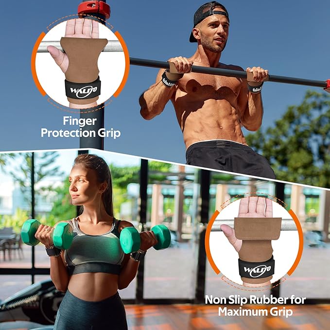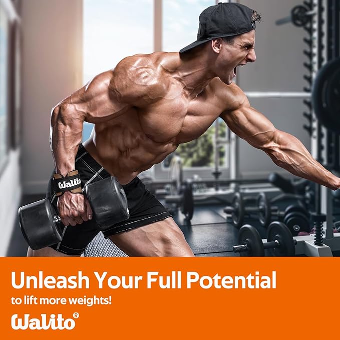 WALITO Weight Lifting Wrist Straps (Pair),Double Layer Leather Grips for Deadlift,Powerlifting and Gym Workouts, Adjustable Neoprene Padded Wrist Wraps - Men/Women, Heavy Duty Support