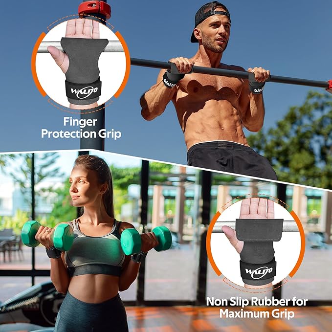 WALITO Weight Lifting Wrist Straps (Pair),Double Layer Leather Grips for Deadlift,Powerlifting and Gym Workouts, Adjustable Neoprene Padded Wrist Wraps - Men/Women, Heavy Duty Support