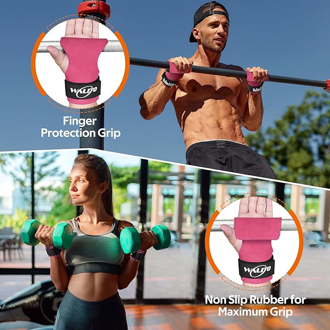 WALITO Weight Lifting Wrist Straps (Pair),Double Layer Leather Grips for Deadlift,Powerlifting and Gym Workouts, Adjustable Neoprene Padded Wrist Wraps - Men/Women, Heavy Duty Support