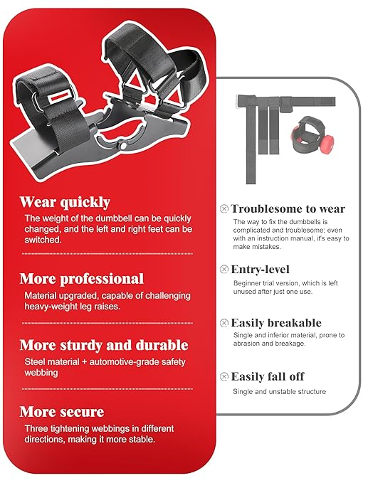 • Material Upgrade: Our foot dumbbell accessories cleverly incorporate a metal structure, achieving an all-round improvement in load-bearing capacity and safety. This elevates your training to a professional level, and the safer and sturdier material ensures you avoid injuries.