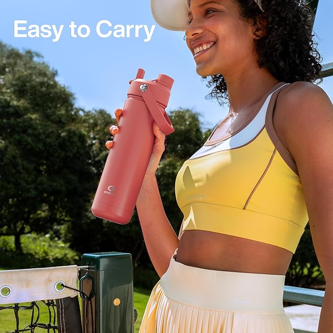 • Sip or Chug, Your Choice: Straw lid for sipping on the go and twist cap for deep hydration, all in one ENCOOL water bottle