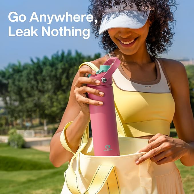 • Sip or Chug, Your Choice: Straw lid for sipping on the go and twist cap for deep hydration, all in one ENCOOL water bottle