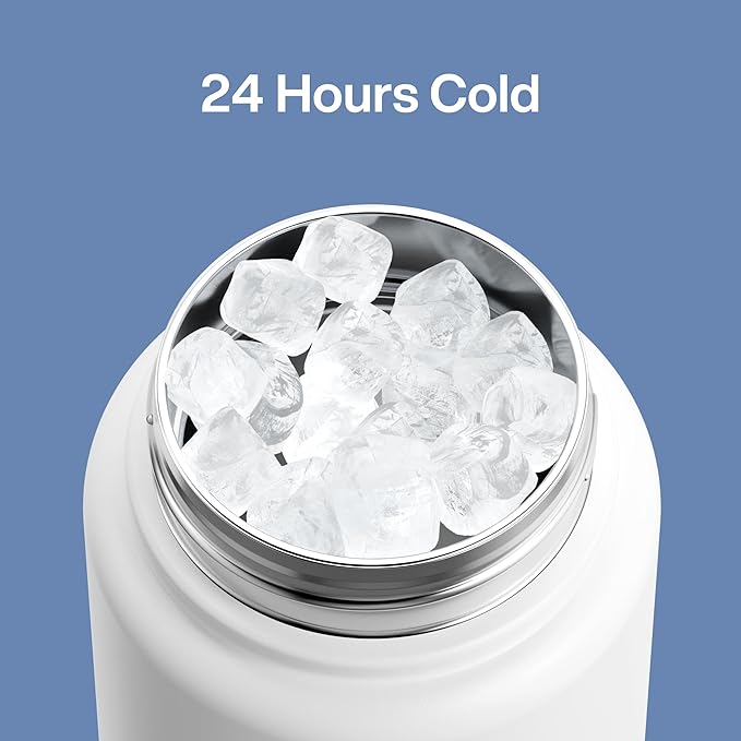 Insulated Water Bottle with Straw Stainless Steel Water Bottle, Leak-Proof, BPA-Free, Double Wall Vacuum Keeps Cold for 24 Hours for Sports, Travel, School (32 oz, Polar White)