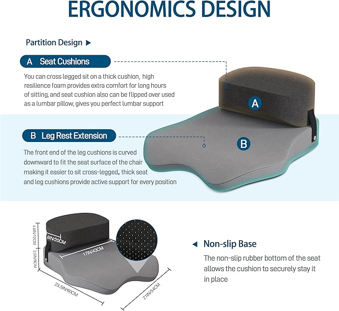 • Versatile Sitting Positions for Enhanced Comfort - Designed for flexibility, this cross-legged chair cushion enables multiple sitting positions, including cross-legged, squatting, kneeling, and more.