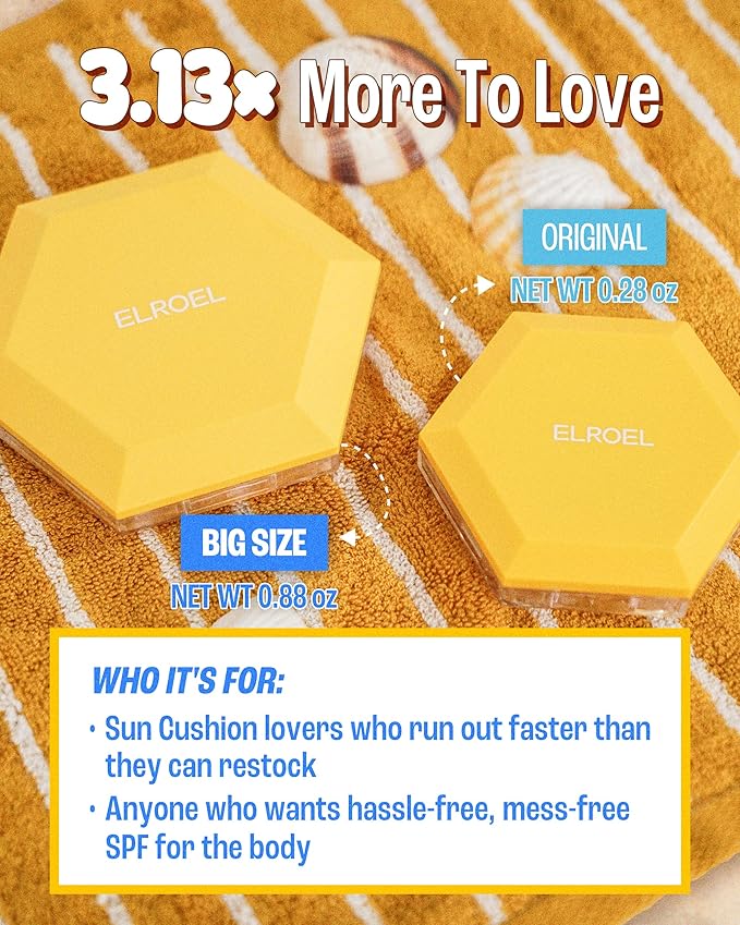 • SPF REAPPLICATION? PAT & PAT! Your sun-smart travel essential for SPF reapplication—this time in a 1.7x larger size for both face and body use! This larger-sized edition of Pang Pang Big Sun Cushion delivers the same hybrid blend of physical and mineral UV filters for a broad-spectrum coverage, all with a generously sized sponge puff and dispensing pad. Just go pat-pat —no mess, no stress.