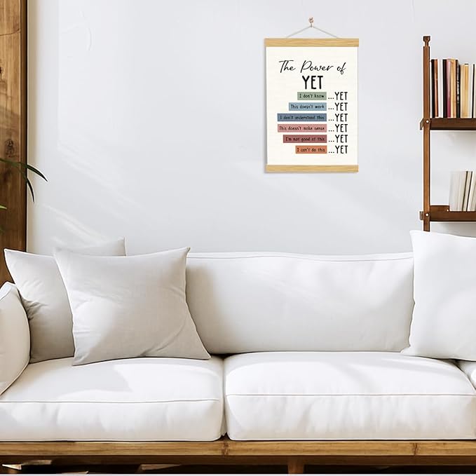 YGSDZY The Power Of Yet Poster, Therapy Office Decor, Wood Poster Hanger, Boho Classroom, Growth Mindset Mental Health Posters, Therapy Wall Art, School Psychology, Classroom Decor