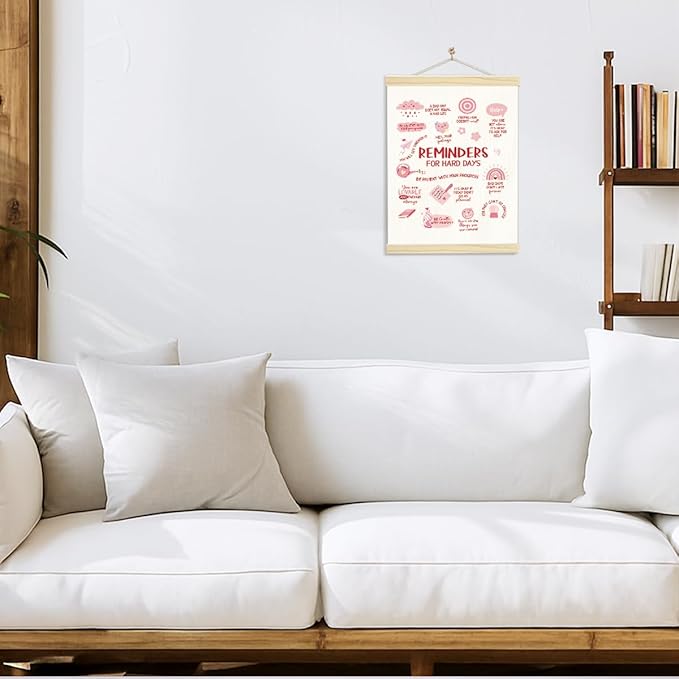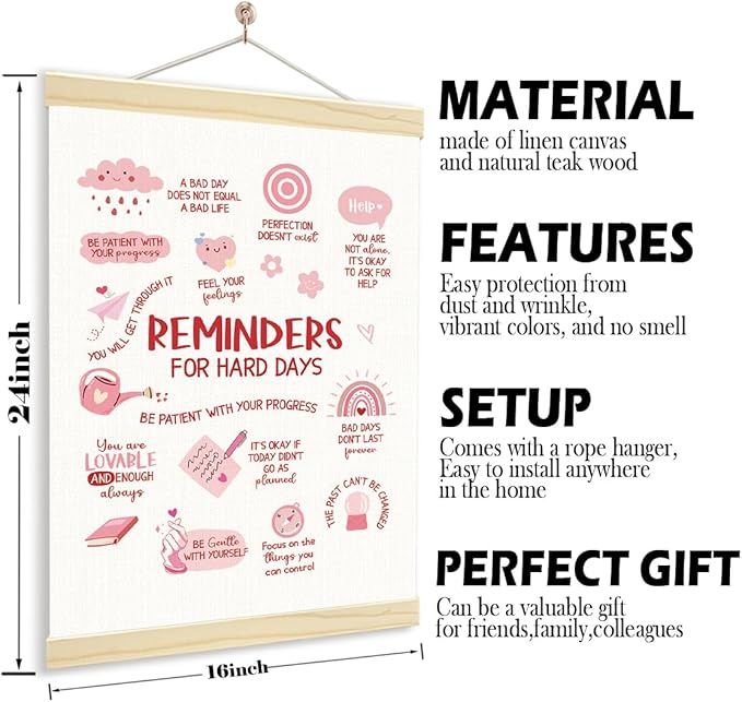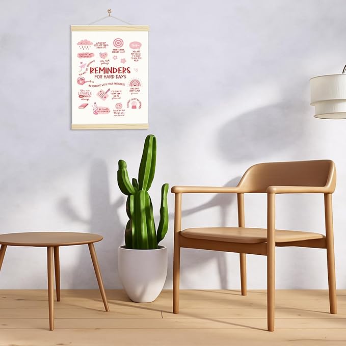 YGSDZY Reminders For Hard Days, Pink Mental Health Office Decor, Wood Poster Hanger, Pink Therapy Poster, Girls Room Decor, Playroom Decoration, Boho Sun Decoration, School Psychology