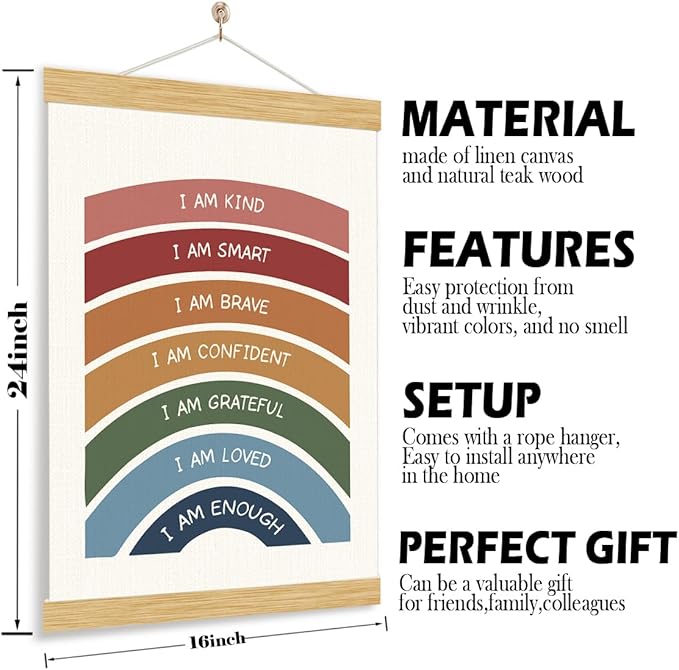 YGSDZY Rainbow Affirmations Wall Art, Wood Poster Hanger, Boho Classroom Decor, Inspirational Decor, Nursery Sun Print, Mental Health Posters, Therapy Wall Art, School Psychology