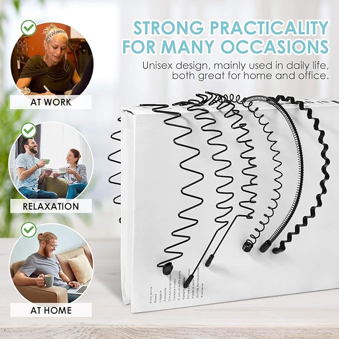 • 【ELASTIC HAIR BANDS】: Men's hair bands are highly elastic. When you feel that the headband is too tight or too loose, you can easily bend and adjust it by hand, hold it on both sides and bend it inward or outward to make it smaller or bigger to adjust it to a comfortable size to make it fit better your head.