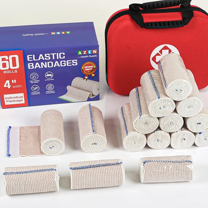 • Individually packed: 60 packs of individually packed 4 inch compression elastic bandage is a perfect complement to the first aid kit and home wound care products. Our bandages are a standard length of 5 feet, and the maximum stretch length of the product is 15 feet for maximum coverage. And is easy to store and carry