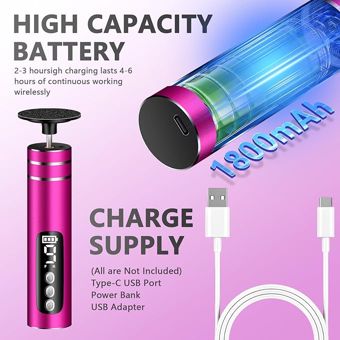 • ✅ 2-in-1 Multifunctional Care – This electric callus remover comes with 2 grinding heads : a flat sanding head for removing calluses, foot corn, dead skin, foot polishing & smoothing soles, and a round polishing head for nail buffing, creating smooth, shiny nails. Perfect for feet & hands