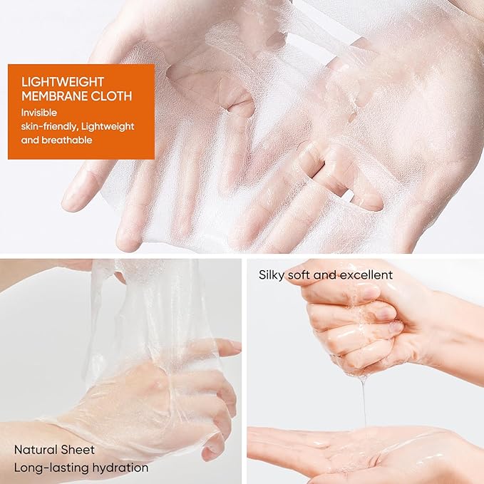 • NATURAL FACIAL SKINCARE:The texture and a soft, smooth touch, these masks deliver active ingredients deeper into the skin for greater moisturization, freshness, efficiency and adhesion; they stop water evaporation and lock in moisture, allowing the skin to absorb every drop.