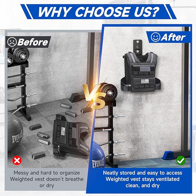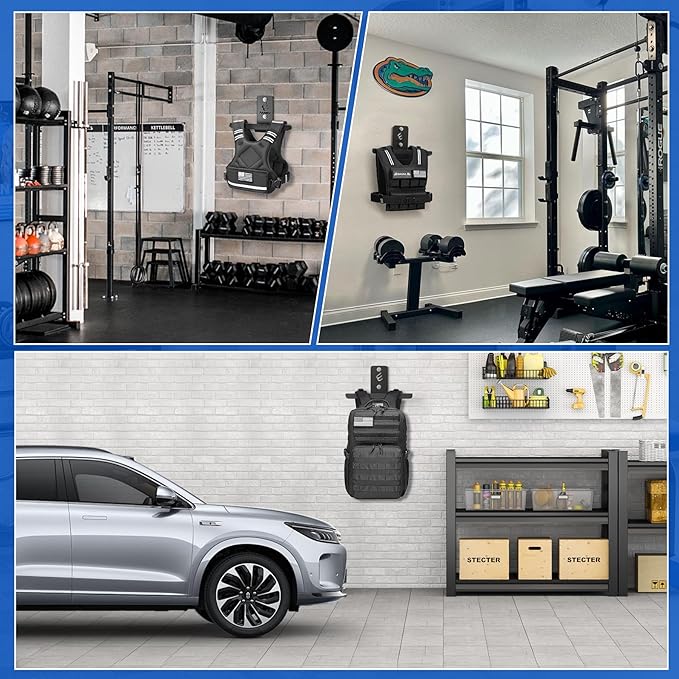 • Wide Application: Built with heavy-duty solid steel and strong hardware, this weighted vest hook can support up to 200 lbs, easily hanging weighted vests, tactical vests, body armor carriers, backpacks, and other gear. This rack is a great helper for organizing home gym accessories