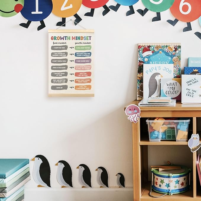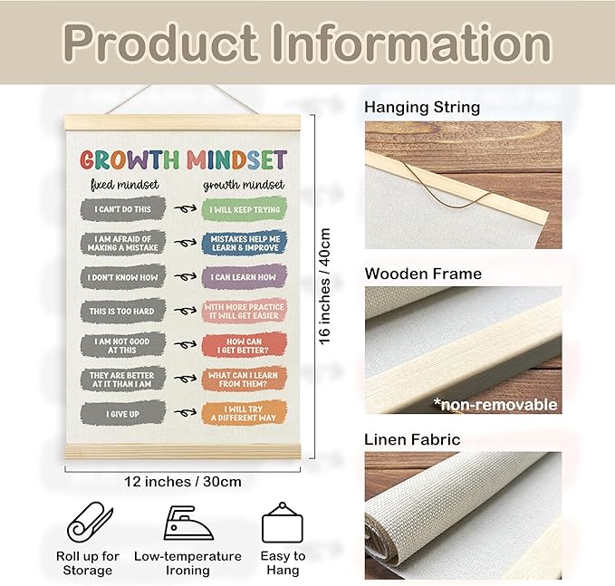 TLESKE Mental Health Growth Mindset Poster Hanger Frame, Inspirational Motivational Hanging Wall Art Decor for Classroom Therapist Therapy Counseling Office Playroom, Nursery Prints Picture, 12x16