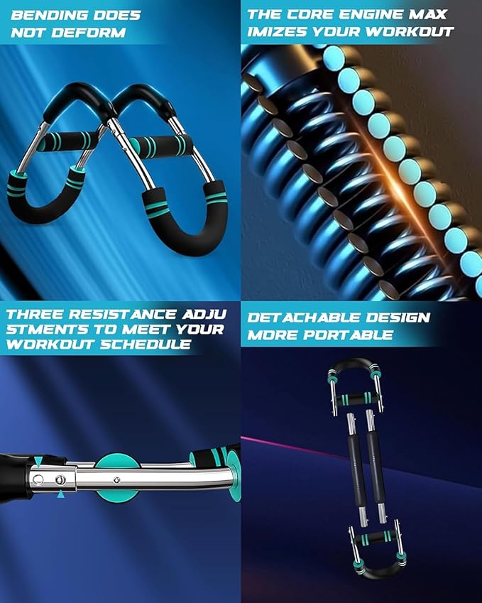 • Twister Arm Trainer as your personal workout trainer and helping you get a killer chest workout, Through the training guide chart. Strength bar work multiple muscle groups with precision, including chest, arms, biceps, abs, shoulders and back, and thigh muscles.