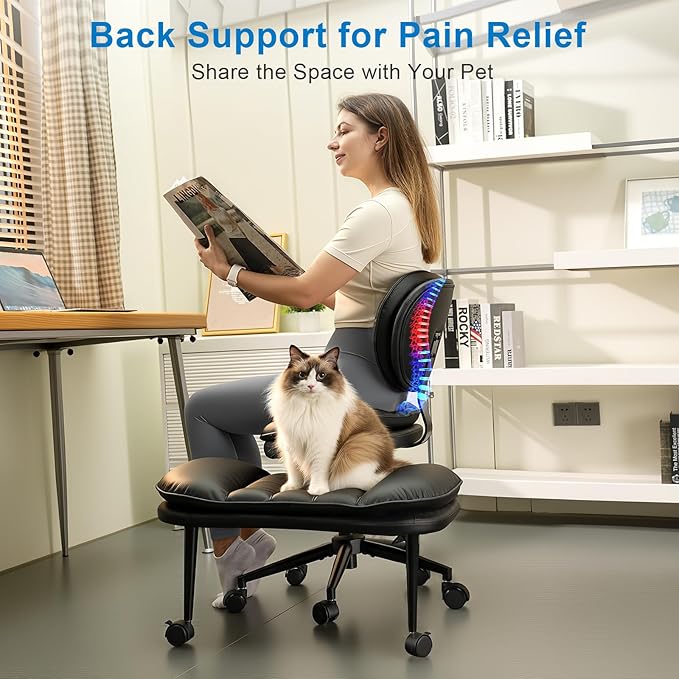 • Leg-Friendly Design: Cross legged sitting isn’t just comfy—it relieves joint stress and boosts leg circulation. The lower seat height makes it easy to shift between work and relaxation modes for a more comfortable sit.