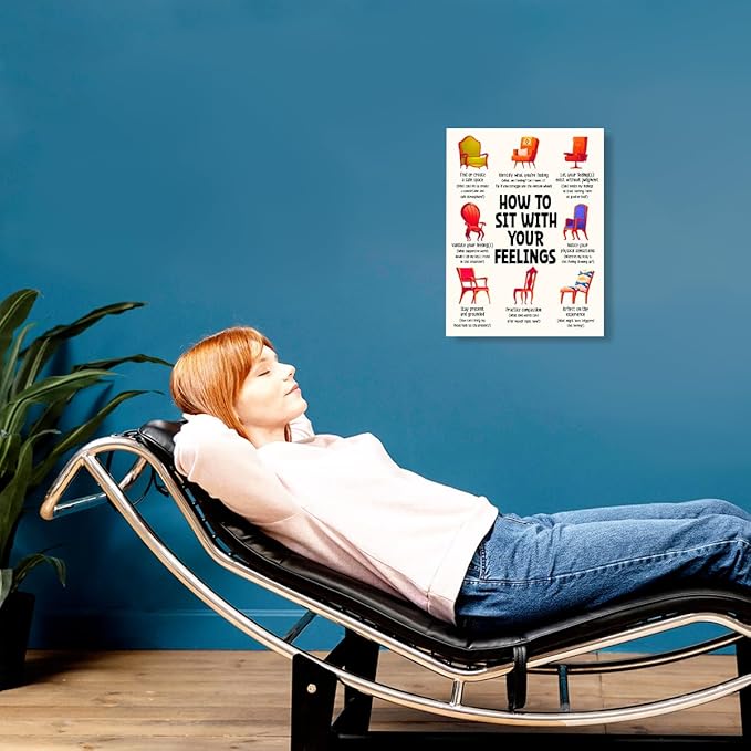 YEOION Mental Health Wall Decor,How to Sit with Your Feeling Wall Art Canvas Frame Print for Mental Health Therapy Office School Counselor Calming Corner Wall Decor