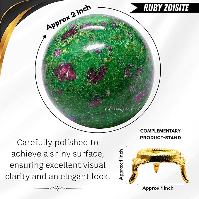 • Natural - Crystal Spheres are made of authentic Ruby Zoisite Crystals and Crystal Sphere Stand is made of brass.