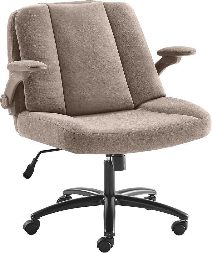 Criss Cross Chair with Arms, Plus Size Cross Legged Desk Chair with Flexible Back Cushion, Adjustable Arm Rest, Extra Wide Seat, 350lbs Fabric Home Office Chair with Castors and Bell Glides, Cocoa