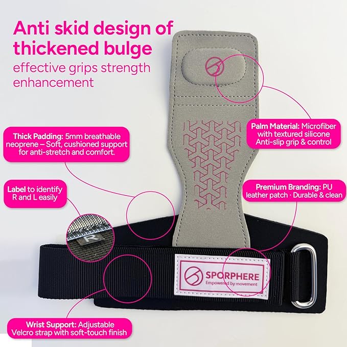 • 🎁 [BONUS HEADBAND & EXCLUSIVE INSTRUCTIONAL VIDEO INCLUDED]: Your purchase includes a stylish Sporphere headband for sweat control and an email with a video guide on how to wear and wash your grips—so quality gear is always easy to use. Enjoy gym grips for women with ergonomic comfort that helps you train with confidence. Our weightlifting straps women deliver added support for CrossFit, gym workouts, and tough pull up grips sessions. Premium hand straps for weight lifting help reduce strain and improve form for all training needs.
