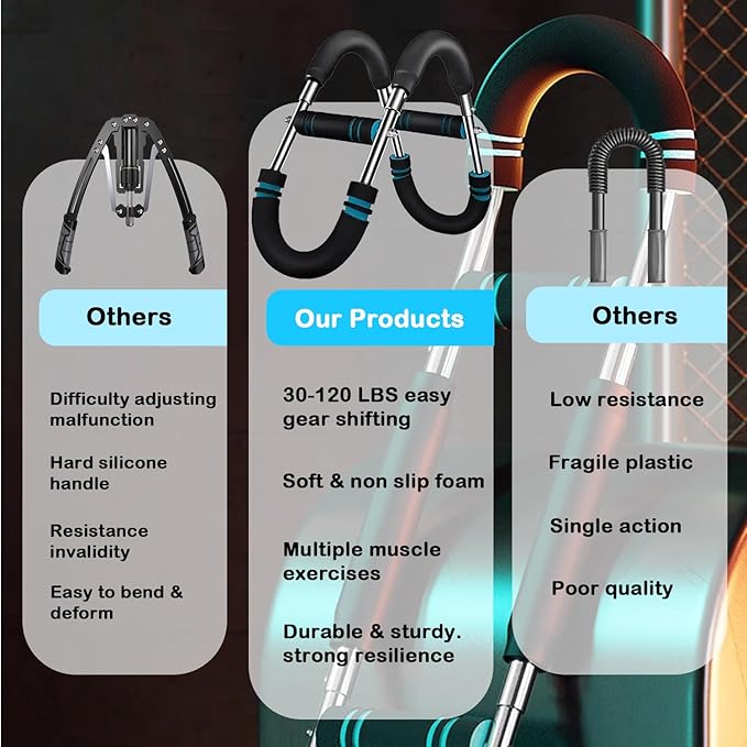 Adjustable Power Twister Bar 40-100lb, Home Gym Chest and Arm Workout Trainer with Ergonomic Foam Grip, Portable Muscle Strength Enhancer