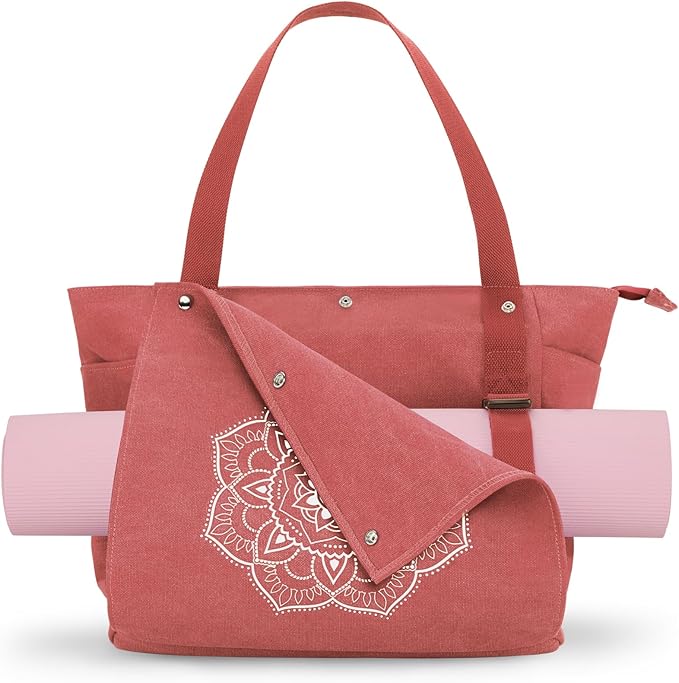 • Patent Pending. Quick & Easy Storage Design: The front of the tote yoga bag can unfold, making it easy to store your yoga mat. There's no need to worry about fitting it in, and it won't take up any space inside the tote. The use of buttons and straps allows for quick storage and ensures the yoga mat stays securely without falling out