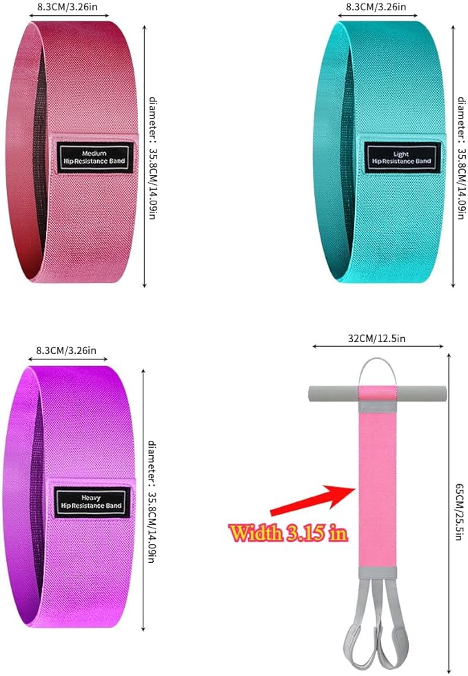 • 20 to 120 pounds resistance available: This set of fabric resistance bands includes 4 products. The resistance bands with handles can provide up to 120 pounds of resistance. The hip bands are 20-35 pounds light, 30-50 pounds medium, and 45-70 pounds heavy, making them ideal for strength training and muscle exercises