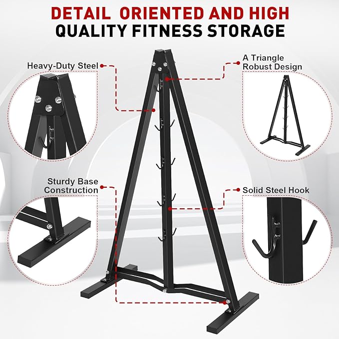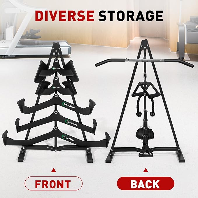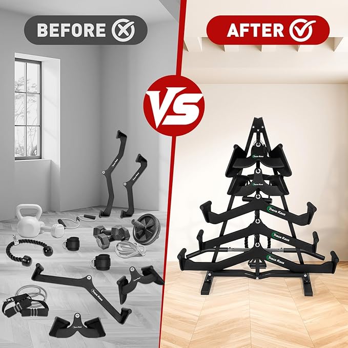 • Versatile Use: Multi-functional design holds gym bars, stores resistance bands, triceps rope and other gym attachments, truly realizes one thing for multiple purposes and creates a convenient and efficient exercise space for fitness lovers