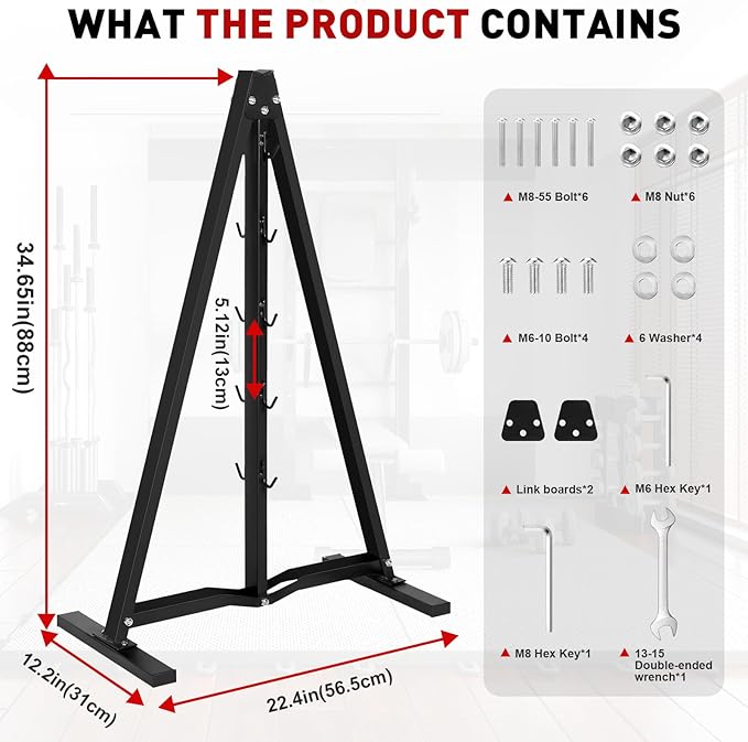 • Easy Installation: Designed as a-frame gym rack comes with an installation manual, a wrench and two hex keys, featuring easy assembly design that allows home gym organizers to complete quick set up effortlessly