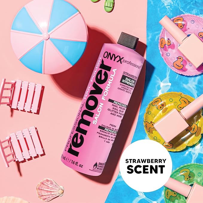 • Acetone-based, Strawberry Scent Gel Polish Remover & Nail File Kit: Onyx Professional's pure acetone nail polish remover effortlessly removes a variety of nail polish, leaving your nails looking clean and polished, while the nail file shapes your nails the way you desire