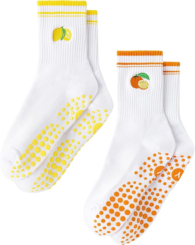Yawlsow Pilates Grip Socks for Women Yoga Grippy Socks Cute Barre Non Skid Athletic Crew Sticky Sock Workout Hospital