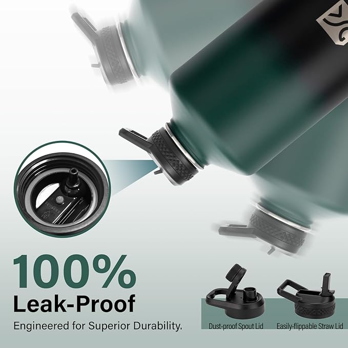 • THE MULTI-LAYER INSULATION TECHNOLOGY FEATURES: the first layer is a thick food-grade 18/8 stainless steel inner wall; the second layer has a copper plating that reduces heat transfer; the third layer is a vacuum layer that prevents heat loss. As a result, you can enjoy an insulated water bottle that keeps beverages cold for up to 48 hours and hot for up to 24 hours, making it perfect for any adventure, whether it's a long hike or a busy workday.