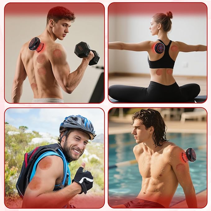 • 【4 in 1 Electric Cupping Set】Our cupping therapy set combines cupping, dynamic suction, heat therapy and red light therapy in one device. Suitable for various body parts such as back, legs, arms and more.