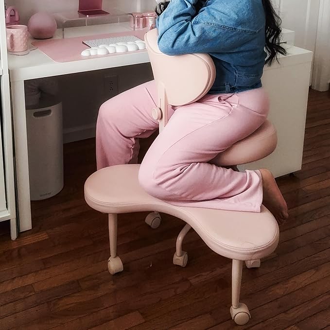 Meditation Cross Legged Chair PRO, ADHD Chair with Height Adjustable Backrest, Criss Cross Desk Use with Footrest and Wheels for Home Office, Flexible Design for Fidgety Sitters, Pink