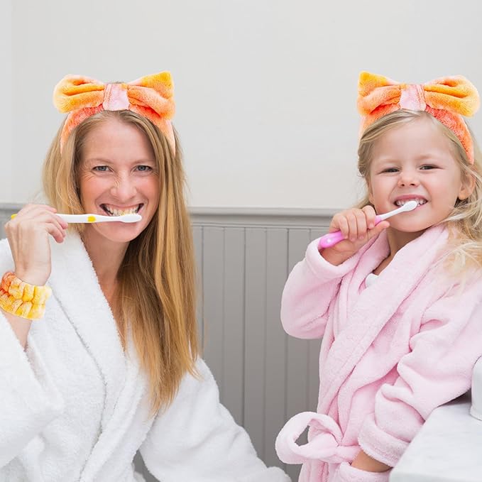 VELSCRUN Spa Headband, Makeup Face Wash Skincare Headbands, 5 Pcs Orange Sponge Bow Tie Get Ready HairBand Facial Wristband Hair Clips Set, Stuff for Teen Girls Women Trendy Hair Accessories