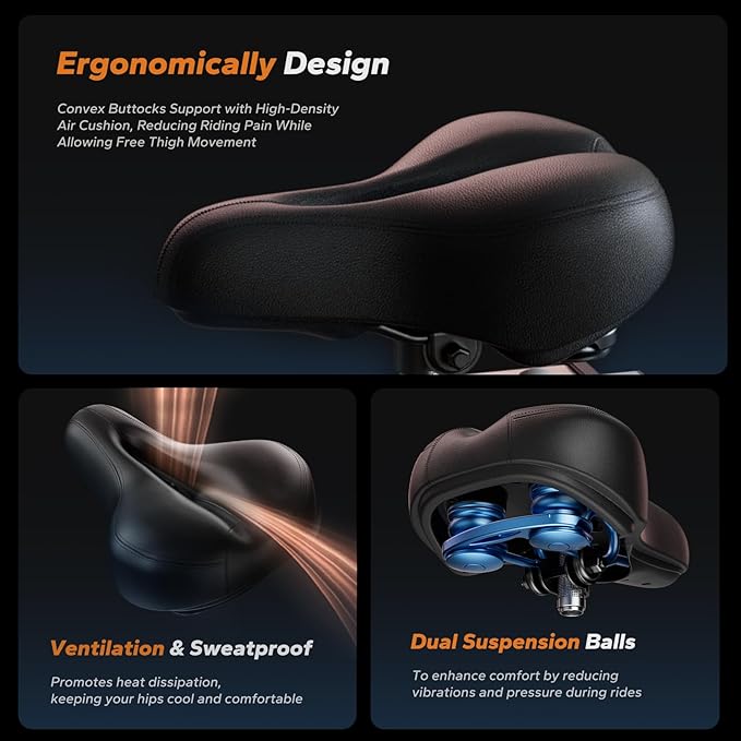 • USER-FRIENDLY BIKE: This workout indoor bike with high density foam and dual spring suspension design helps alleviate discomfort during your ride. The aluminum alloy pedal provides better flexibility, slip resistance, and safety. Additionally, the handlebars feature advanced ergonomic designs for a more comfortable grip, allowing you to focus on your workout without distractions