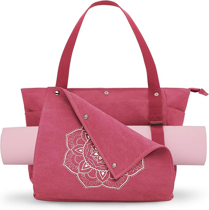 • Patent Pending. Quick & Easy Storage Design: The front of the tote yoga bag can unfold, making it easy to store your yoga mat. There's no need to worry about fitting it in, and it won't take up any space inside the tote. The use of buttons and straps allows for quick storage and ensures the yoga mat stays securely without falling out