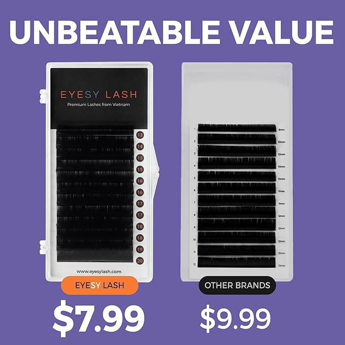 • ✅ VALUE FOR MONEY: Eyesy Lash delivers professional-grade lash extensions at an unbeatable price, our classic & volume lash extensions are an ideal choice for lash artists looking to deliver stunning results while keeping service costs in check. High value with no compromise on quality.