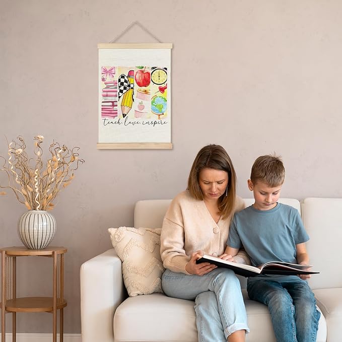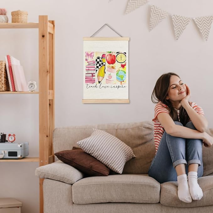JINYO Teacher Wall Decor, Teach Love Inspire Classroom Wall Art Poster, Back to School Teacher Appreciation Gifts Canvas Prints Wall Decor for Classroom Office, 12x16 Inches