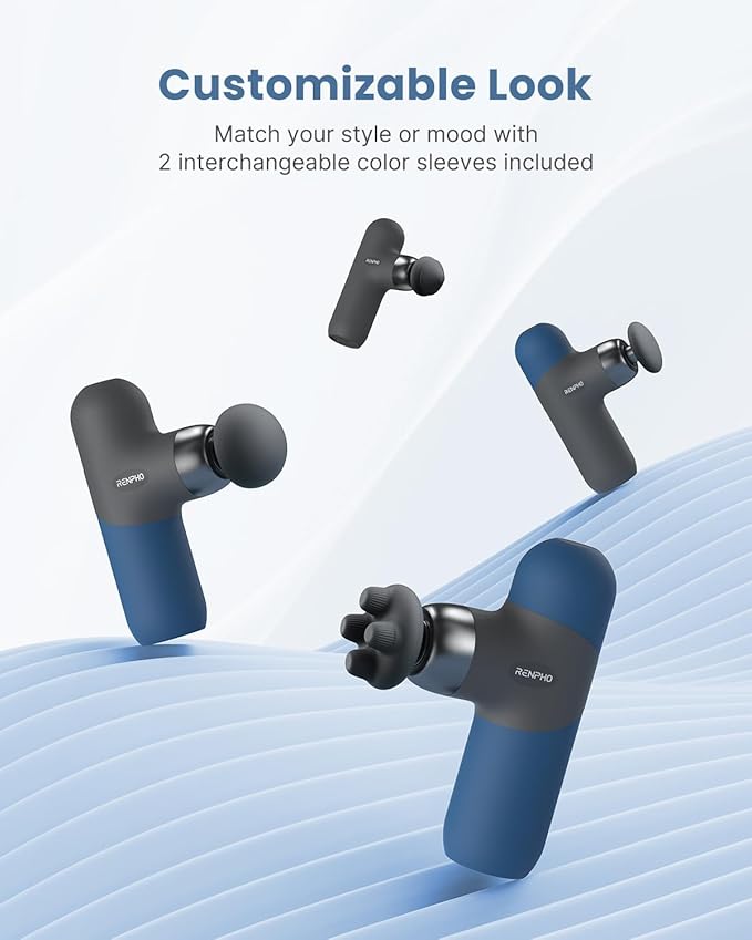 • Your Style, Your Way: The percussion massage gun's interchangeable color silicone sleeves feature both style and practicality. Mix and match colors to fit your unique style each day, while enjoying the non-slip grip and easy-to-clean surface.