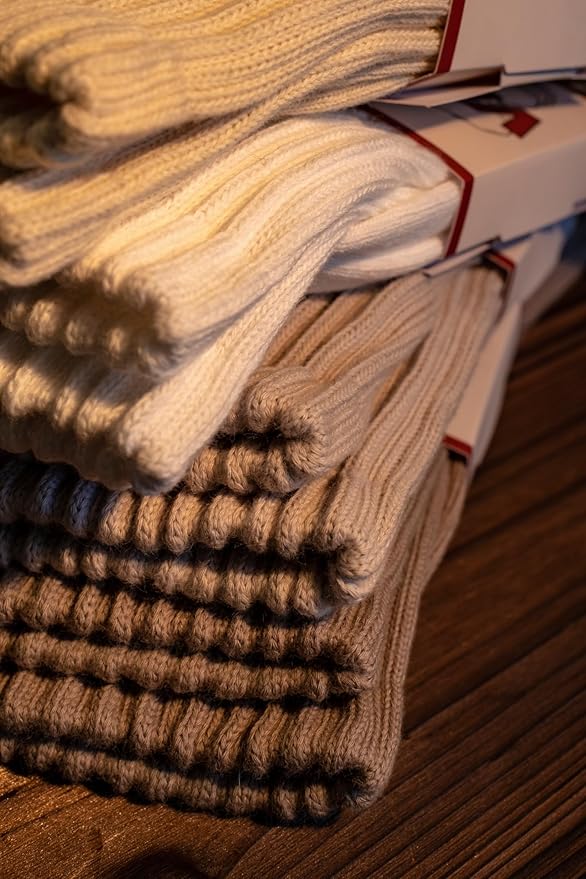 4 Pairs Natural 98% Cotton Crew Socks - Seamless, Breathable, Cozy Fall & Winter Socks for Women & Men