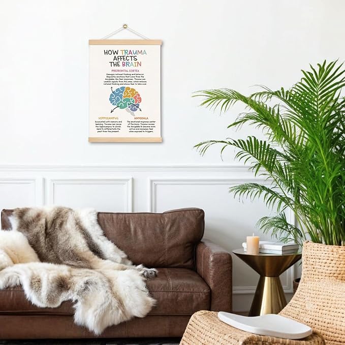 Human Brain Mental Health Wall Art Poster, Therapy Office Must Haves, How Trauma Affects The Brain CBT DBT Psychology Poster Hanger Frame for Therapy Counselor Office Classroom, 12x16 Inches