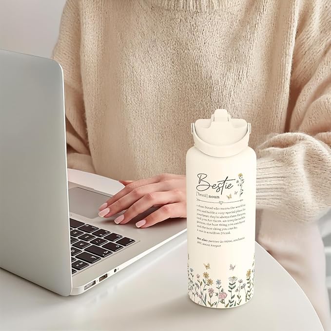 Best Friend Water Bottle 32oz Stainless Steel with Lid & Straw, Bestie Insulated Bottles for Women Girls Female Friends Sisters, Gifts Ideas for Birthday Christmas