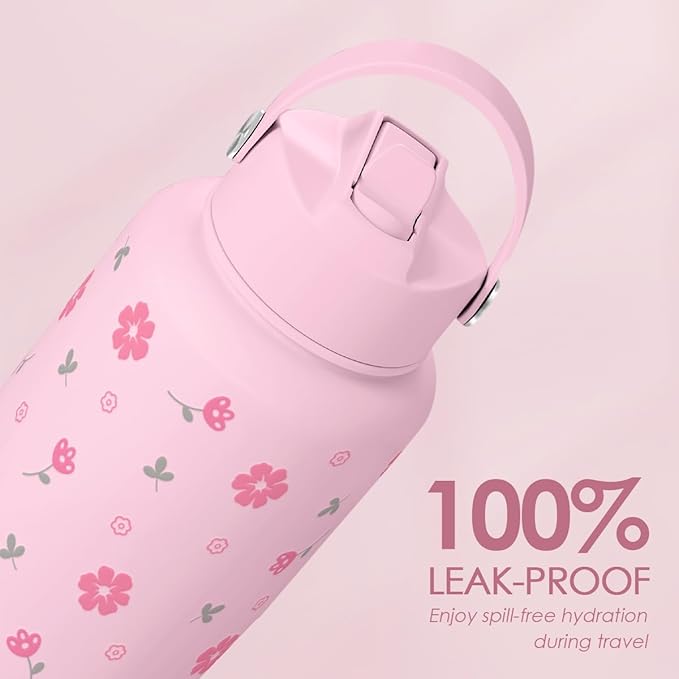 Floral Water Bottle 32oz Stainless Steel with Lid, Insulated Bottles for Women Girls, Gifts Ideas for Birthday Christmas