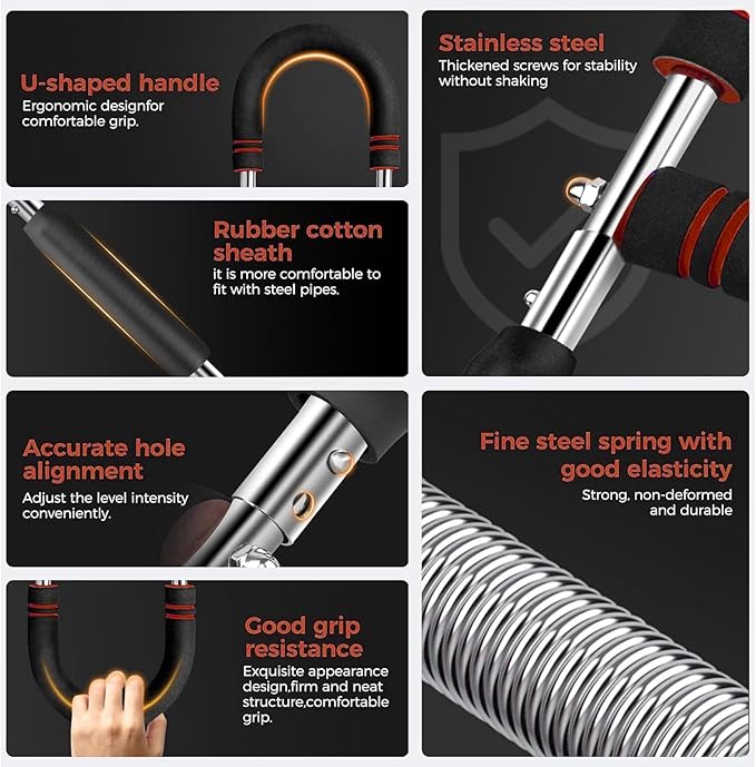 • PRO-GRADE SAFETY & DURABILITY: High-resilience metal springs wrapped in elastic leather covers prevent pinching, rust, and wear. Thickened anti-slip foam handles ensure a secure grip during intense chest press or twisting motions