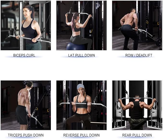 • Smooth Moving Swivel Hooks: 360° revolving hooks provide full range of motion during exercises. This Deluxe LAT bar attaches to your home gym, Smith machine, etc.. Incorporate this LAT bar into your strength training routine to build upper body mass