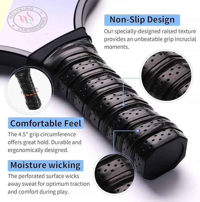 HOLYKING Pickleball Paddles Set, Fiberglass Pickle Ball Racket of 2, 2 Paddles, 2 Balls, 2 Bouncy Balls and Carry Bag, Lightweight Rackets for Women and Men